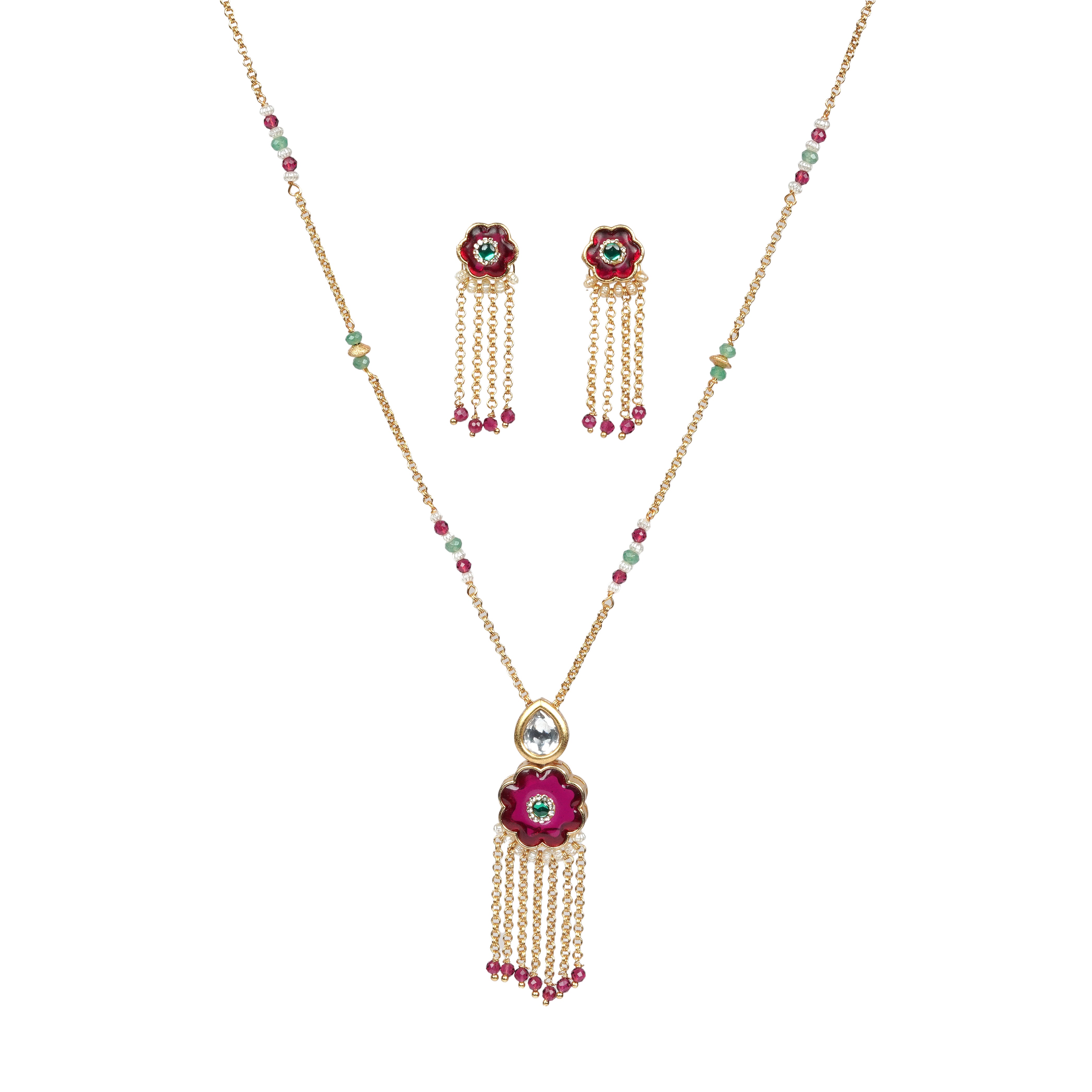 Elegant Floral Tassel Necklace Set