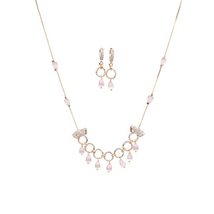 Pink Pearl Drop Necklace & Earrings Set