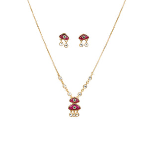Ruby Pink Enamel & Kundan Drop Necklace Set